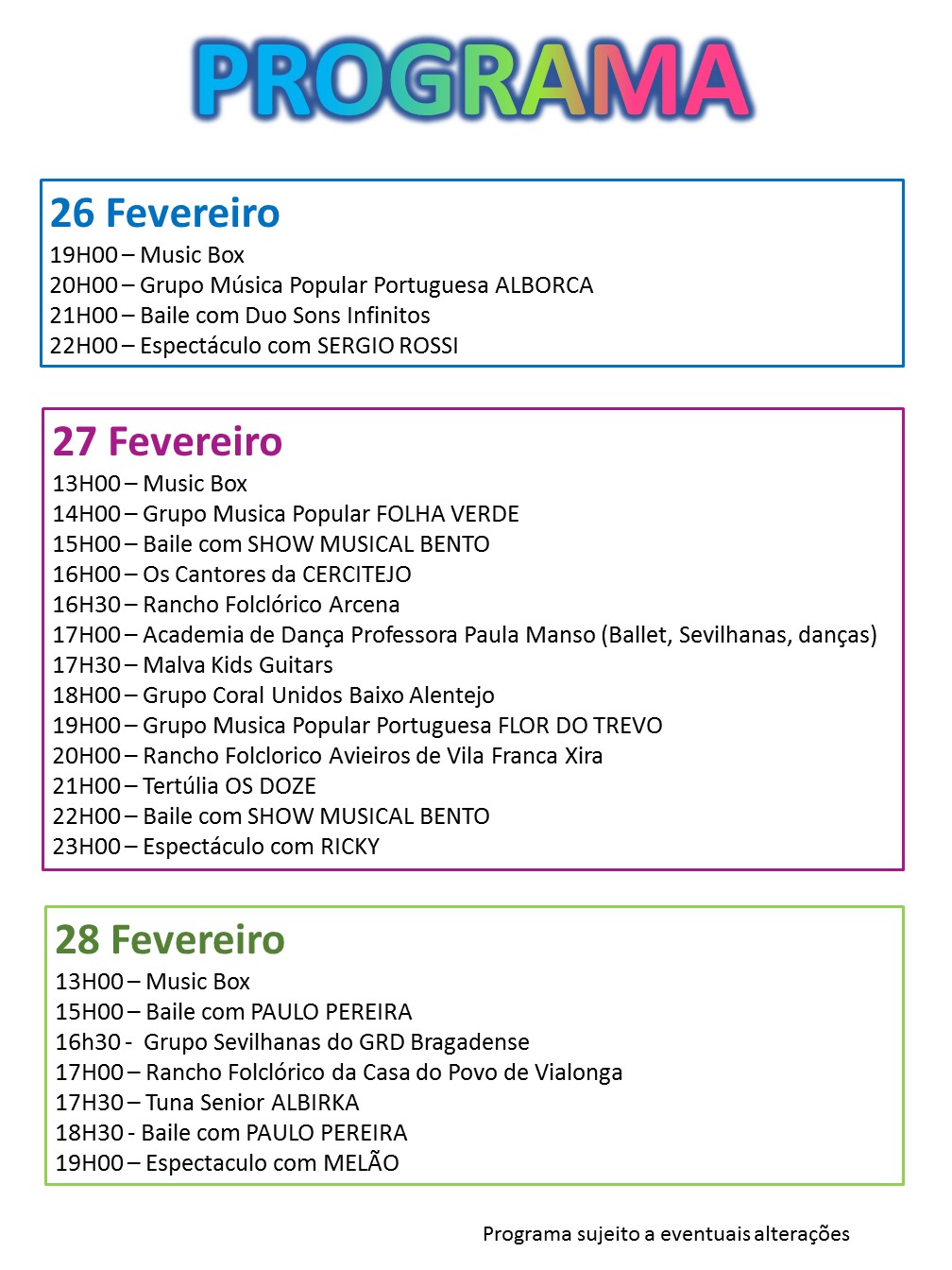 A Sociedade Filarmónica Recreio Alverquense vem por este meio convidar V. Exa a visitar o Festival das Sopas e Doces que se realiza nos dias 26,27 e 28 de Fevereiro, na nossa Sede.