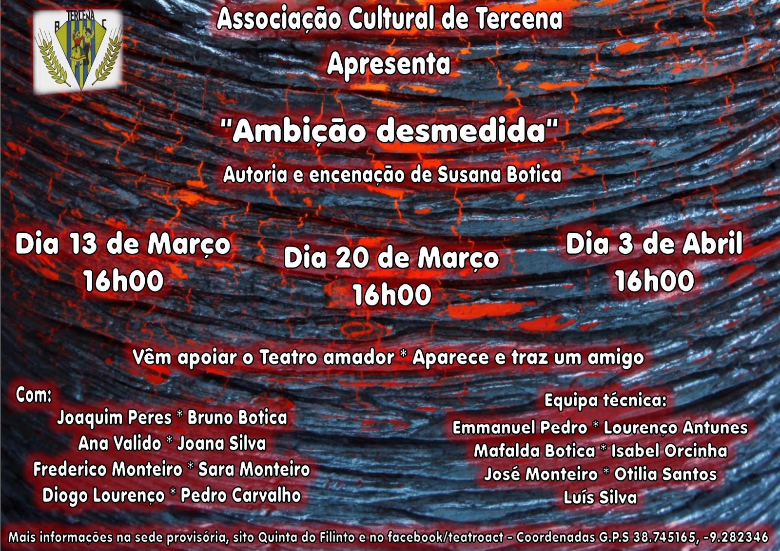 Venho por este meio divulgar a próxima produção teatral da Associação Cultural de Tercena e desta forma solicitar que partilhem a informação.